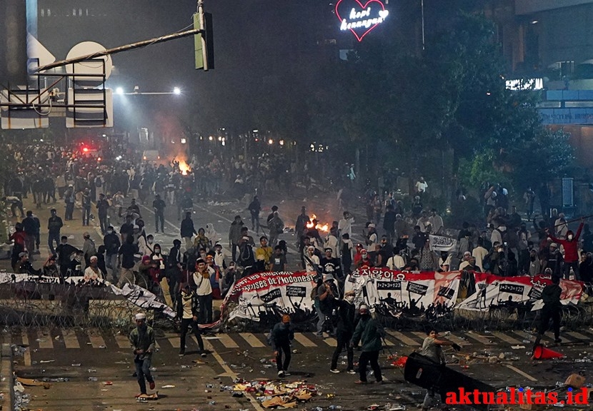 AKTUALITAS.ID – Demonstran terlibat bentrok dengan polisi saat menggelar Aksi 22 Mei di depan gedung Bawaslu, Jalan MH Thamrin, Jakarta, Rabu (22/5/2019). Aksi unjuk rasa itu dilakukan menyikapi putusan hasil rekapitulasi nasional Pemilu serentak 2019.  [Kiki Budi Hartawan].