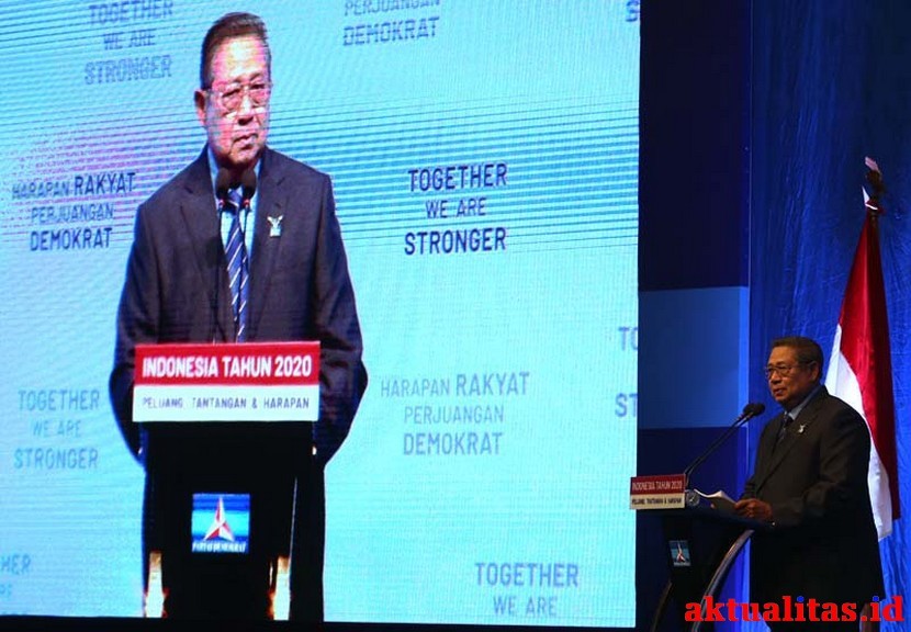 AKTUALITAS.ID – Ketua Umum Partai Demokrat Susilo Bambang Yudhoyono (SBY) saat menyampaikan pidato pada Refleksi Pergantian Tahun Partai Demokrat di Jakarta Convention Center (JCC), Senayan, Jakarta, Rabu (11/12/2019). Dalam pidatonya SBY menegaskan komitmen untuk mendukung pemerintah agar sukses dalam menjalankan tugasnya meskipun Partai Demokrat berada di luar pemerintahan. [Munzir/Kiki Budi Hartawan]