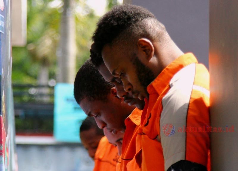 AKTUALITAS.ID – Petugas Imigrasi Jakrta barat merilis sejumlah warga negara asing (WNA) yang berhasil mengamankan Imigrasi Jakarta Barat dalam rilis di Jakarta, Selasa (21/1/2020). Sebanyak 13 orang WNA asal negara-negara Afrika seperti Nigeria, Pantai Gading dan Guinea-Bissau diamankan pihak Imigrasi karena melanggar ketentuan keimigrasian. [Munzir]