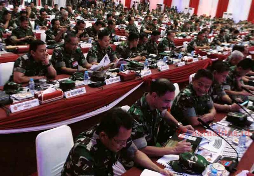 AKTUALITAS.ID Panglima TNI Marsekal TNI Hadi Tjahjanto, KSAL Laksamana TNI Siwi Sukma Adji, KSAU Marsekal TNI Yuyu Sutisna, dan Wakasad Letjen TNI tatang Sulaiman menghadiri acara Rapat Pimpinan TNI 2020 di Mabes TNI, Cilangkap, Jakarta Timur, Rabu (29/1/2020). Rapim TNI tersebut mengambil tema Membangun TNI yang Kuat, Unggul, Maju dan Mandiri Guna Keberhasilan Pelaksanaan Tugas Pokok. [Munzir]