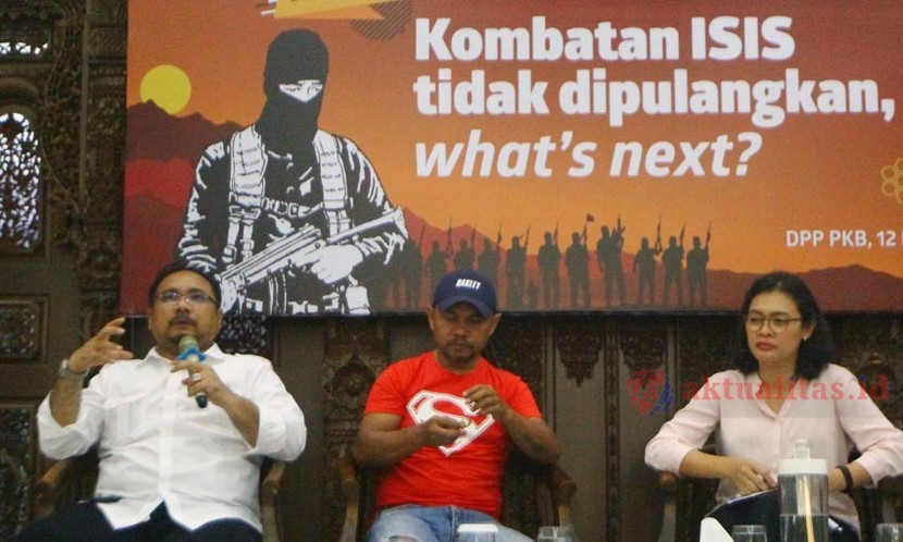 AKTUALITAS.ID – Kiri – Kanan: Anggota DPR RI Fraksi PKB Yaqut. C. Coumas, Analis Kinflik dan Terorisme Alto Luger dan Praktisi Pengajar Hubungan International Dinna Wisnu saat membuka diskusi Reboan di kantor DPP PKB, Jakarta, Rabu, (12/2/2020). Diskusi tersebut mengangkat tema “Kombatan ISIS tidak dipulangkan, what’s Next” [Munzir]