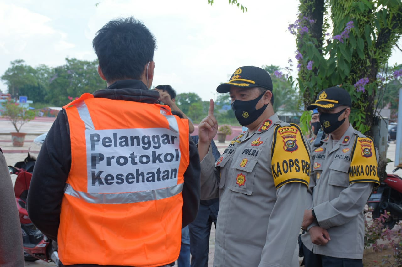 “Sanksi Administrasi terhadap perorangan: teguran lisan; dan kerja sosial berupa membersihkan sarana fasilitas umum dengan mengenakan rompi atau denda sebesar Rp. 20.000,- (Dua Puluh Ribu Rupiah) per orang,” terang Apriyadi.
