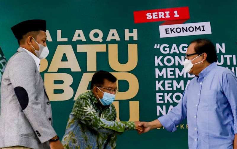 AKTUALITAS.ID – Wakil Presiden Republik Indonesia (2014-2019) Muhammad Jusuf Kalla bersama Ketua Umum PKB Muhaimin Iskandar, Direktur INFID Sugeng Bahagijo dan Ekonom/Mantan Menteri Ekonomi era Gus Dur Dr Rizal Ramli saat menghadiri acara HALAQAH 1 ABAD NU di Kantor DPP PKB, Jakarta, Kamis (2/12/2021). mengusung tema Gagasan Kontributif Membangun Kemandirian Ekonomi Nahdliyin. [Munzir]