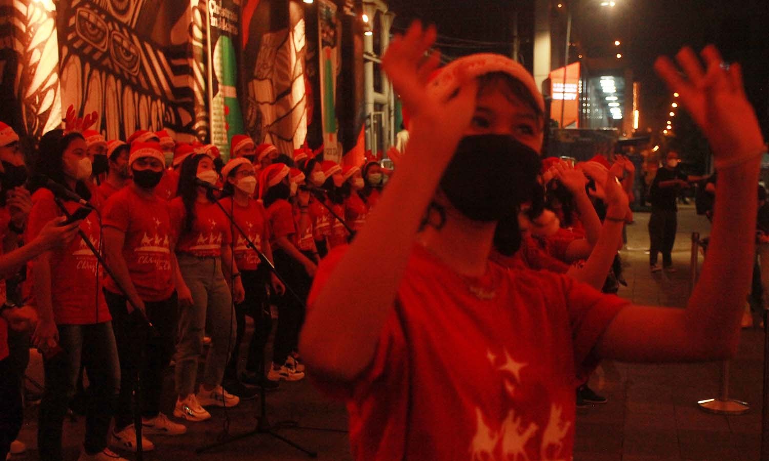 Suasana pertunjukan paduan suara yang mewarnai acara ‘Christmas in Jakarta’ di kawasan terowongan Jalan Kendal, Jakarta, Selasa (21/12/2021). Pemerintah Provinsi DKI Jakarta menggelar acara ‘Christmas in Jakarta’ dalam rangka menyambut Natal 2021. [Munzir]
