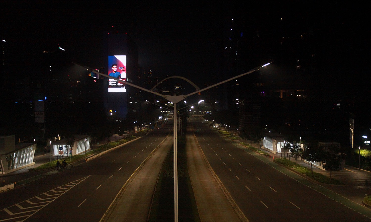 AKTUALITAS.ID – Suasana sepi Jalan MH Sudirman saat penerapan Crowd Free Night pada malam pergantian tahun di Jakarta, Jumat (31/12/2021). Polda Metro Jaya menerapkan aturan Crawd Free Night saat malam pergantian tahun di 11 lokasi di Jakarta untuk mencegah adanya kerumunan di masa pandemi COVID-19. [Munzir]