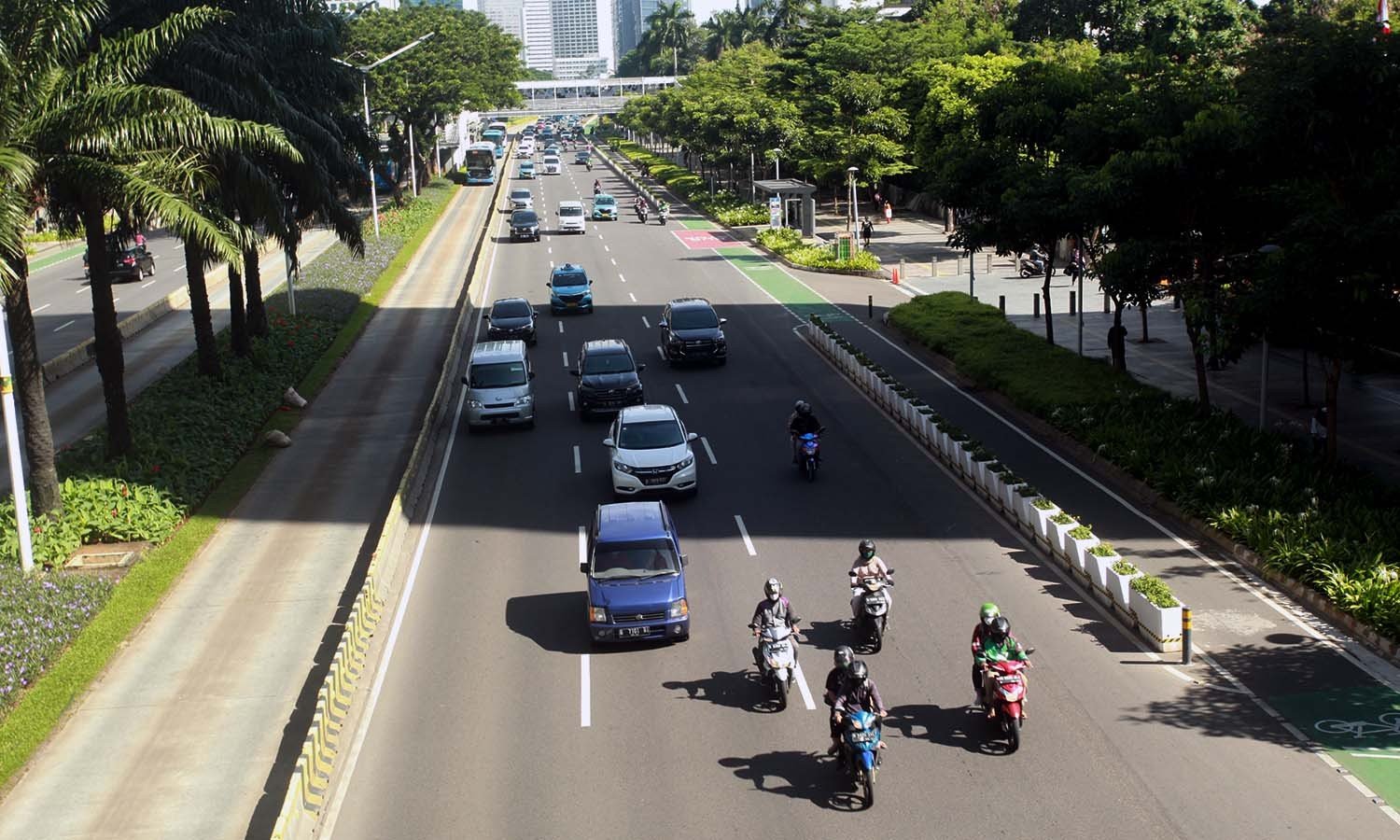 AKTUALITAS.ID – Terlihat kendaraan melintas di Jalan Jenderal Sudirman, Jakarta, Senin (3/1/2022). Usai libur tahun baru 2022 lalu lintas di Jakarta kembali padat usai libur tahun baru 2022. Hal itu terlihat dari volume kendaraan yang meningkat di sejumlah ruas jalan di Jakarta. [Munzir]