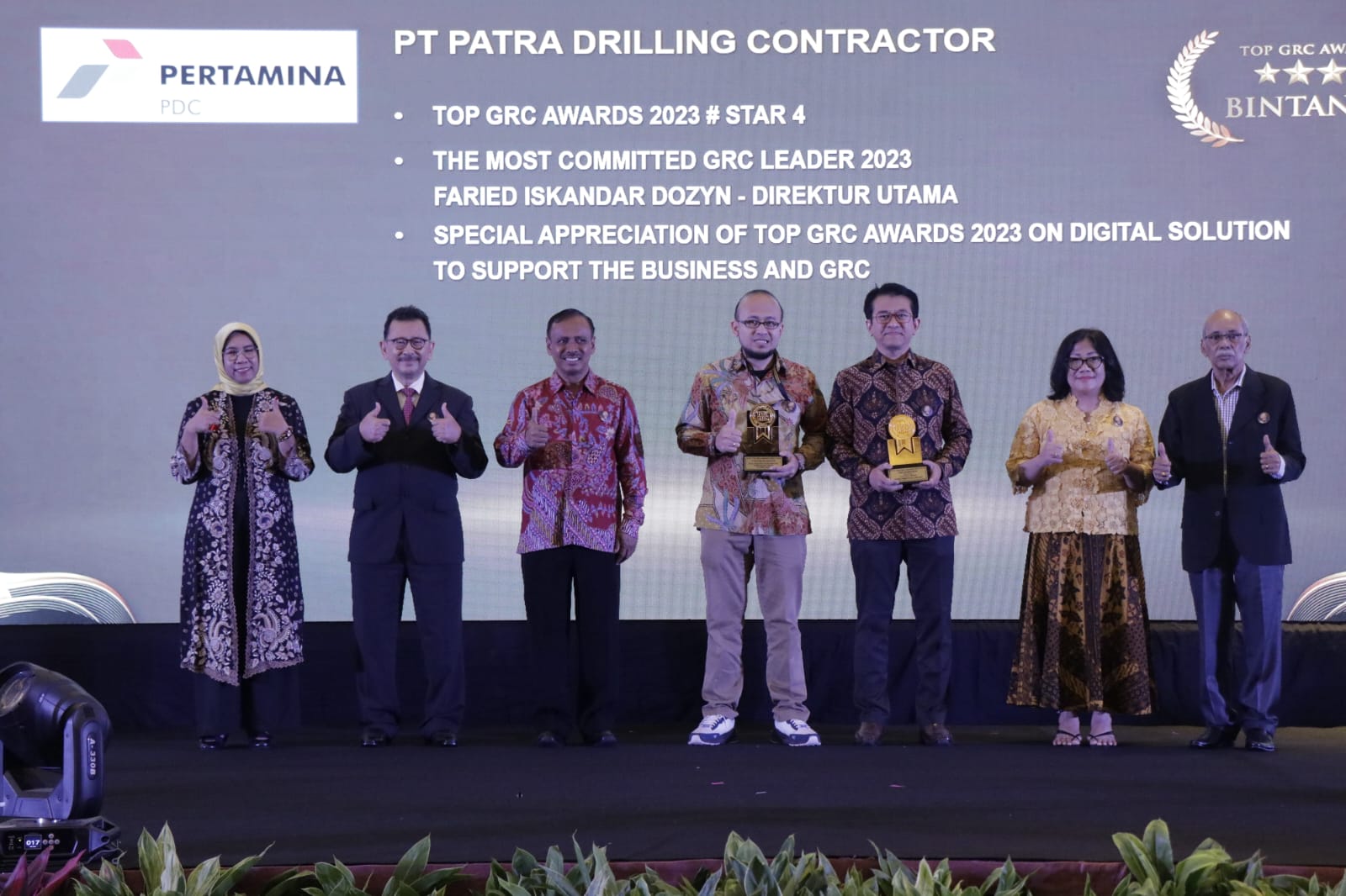 Di kali pertama keikutsertaannya, PDC langsung meraih tiga penghargaan di ajang Top GRC Awards 2023, Ketiga penghargaan itu yakni Top GRC Awards Level 4 Stars (Sangat Baik), The Most Committed GRC Leader 2023 yang disematkan kepada Direktur Utama PT Patra Drilling Contractor Faried Iskandar Dozyn, dan Special Appreciation of Top GRC Award 2023 on Digital Solution to support the Business and GRC.