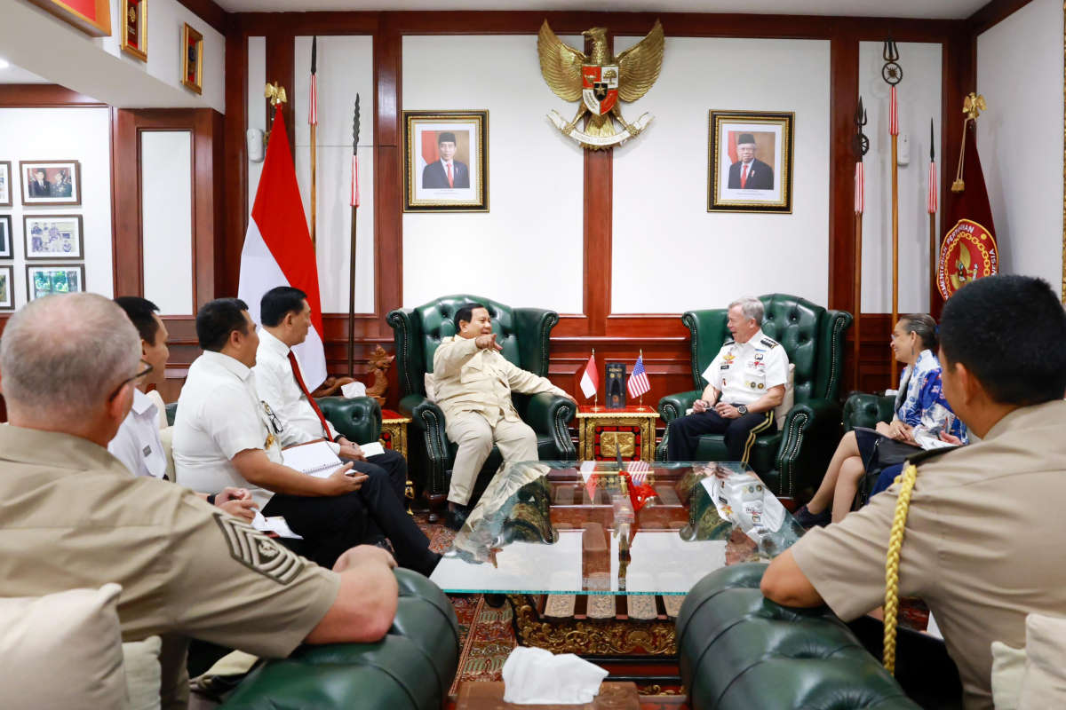 AKTUALITAS.ID – Menteri Pertahanan (Menhan) RI Prabowo Subianto menerima kunjungan Commander of The United States Special Operations Command (USSOCOM) atau Komandan Komando Operasi Khusus (Koopsus) Amerika Serikat Jenderal Bryan P. Fenton beserta delegasi, di kantor Kementerian Pertahanan RI, Jakarta Kamis (22/8/2024).
