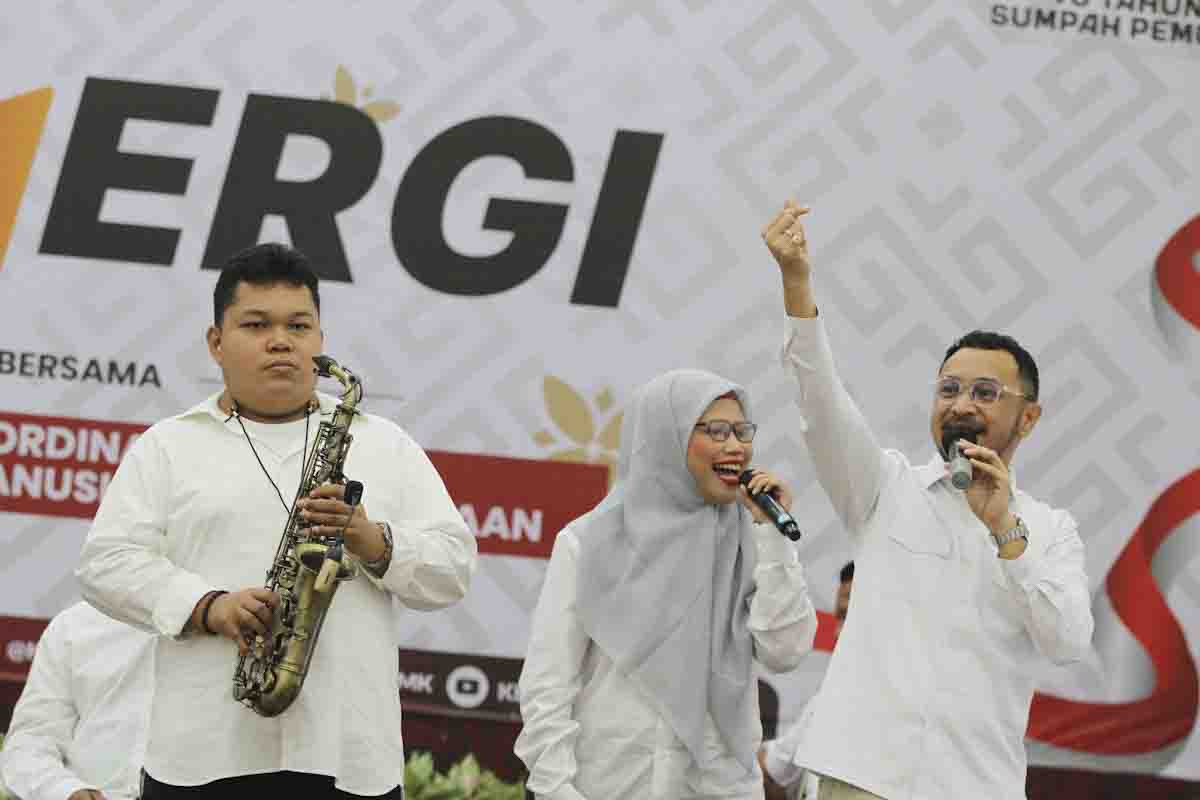 AKTUALITAS.ID – Wakil Menteri Kebudayaan Giring Ganesha, memberikan sambutan saat menghadiri acara SENERGI (Senin Bersinergi) di kantor Kemenko PMK, Jakarta, Senin (9/12/2024).