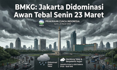 JABODETABEK23/03/2026 05:30 WIBBMKG: Jakarta Didominasi Awan Tebal Senin 23 Maret