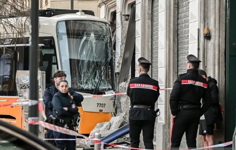Trem tersebut melaju dengan kecepatan tinggi di jalan Vittorio Veneto di pusat kota tersebut sekitar pukul 15.00 GMT (22.00 WIB) ketika moda transportasi itu menabrak sisi sebuah bangunan, menghancurkan jendela toko dan akhirnya berhenti setelah menabrak pohon.