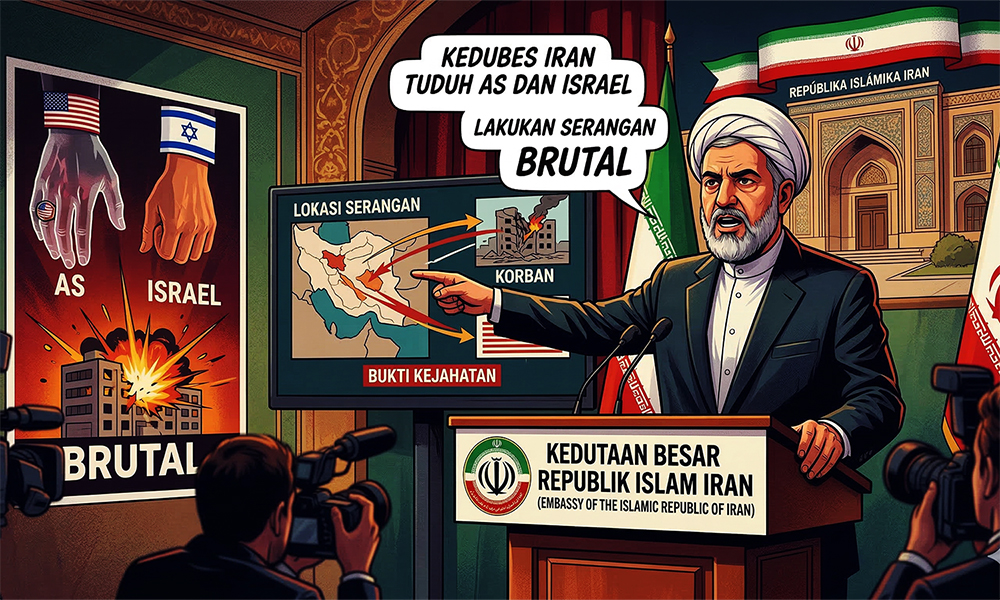 Dalam pernyataan pers yang dirilis di Jakarta, Kedubes Iran menyebut serangan yang dilakukan Amerika Serikat dan Israel sebagai agresi brutal yang telah menyebabkan banyak korban sipil serta kerusakan infrastruktur di wilayah Iran.