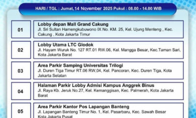 Melalui akun X resmi @TMCPoldaMetro, Polda Metro Jaya menyampaikan bahwa layanan SIM Keliling akan beroperasi mulai pukul 08.00 hingga 12.00 WIB di dua lokasi: