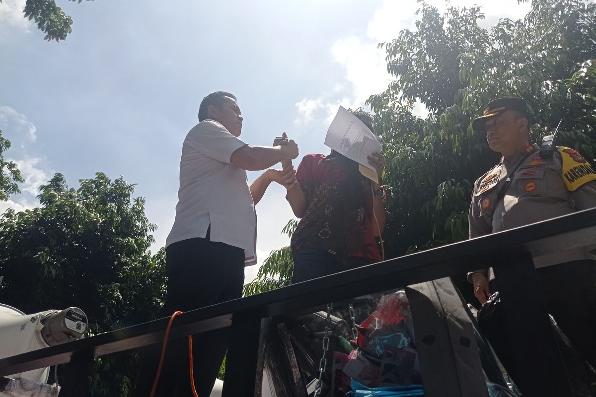 Kepala Kantor Pertanahan Kota Administrasi Jakarta Utara, Sontang Manurung, mengumumkan hasil mediasi dari atas mobil komando.