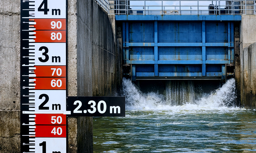 Kondisi ini menunjukkan adanya peningkatan debit air yang cukup signifikan dibandingkan tengah malam yang berada di angka 680 cm.