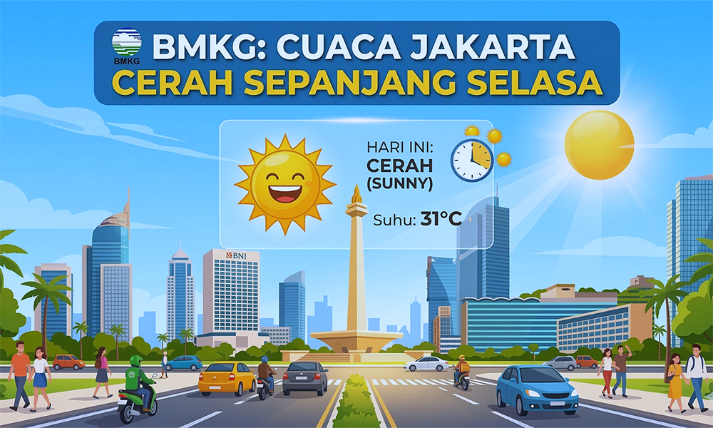 AKTUALITAS.ID – Badan Meteorologi, Klimatologi, dan Geofisika atau Badan Meteorologi, Klimatologi, dan Geofisika memprakirakan cuaca di wilayah DKI Jakarta pada Selasa (17/3/2026) didominasi kondisi cerah hingga cerah berawan.