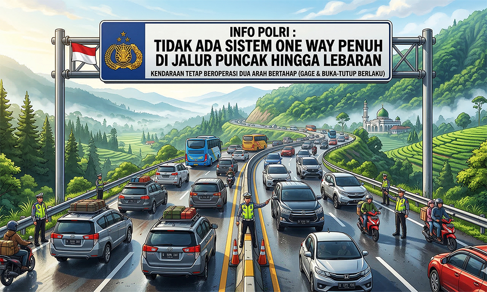 Menurutnya, hingga saat ini belum ada rencana penerapan one way penuh selama periode mudik di Jalur Puncak. Sebagai gantinya, kepolisian akan menerapkan rekayasa lalu lintas secara situasional di titik-titik rawan kemacetan.