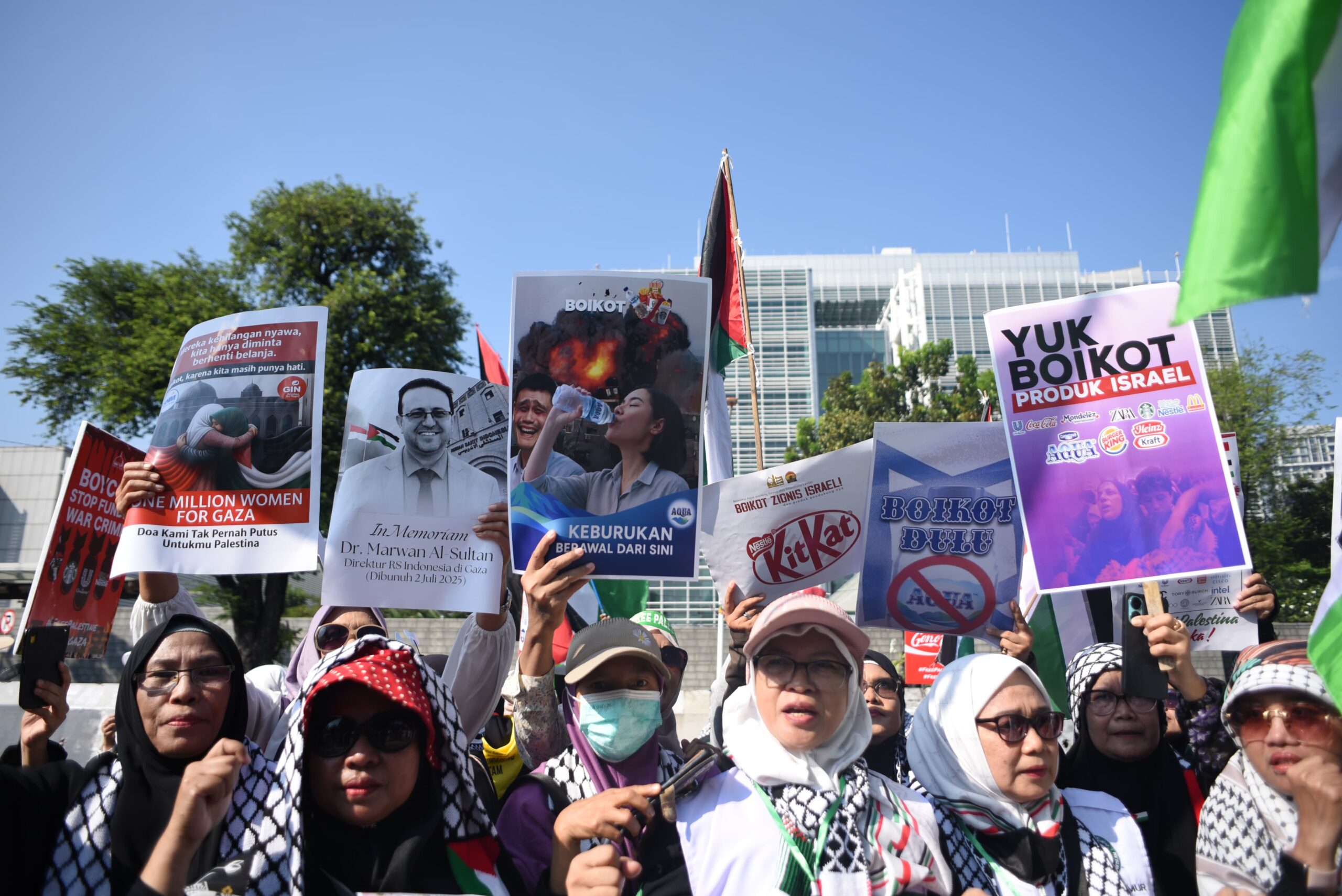 AKTUALITAS.ID – Puluhan ribu perempuan Indonesia dari 40 ormas dan komunitas yang bergabung dalam aksi damai Satu Juta Perempuan untuk Gaza (One Million Women for Gaza) menyerukan pemboikotan produk-produk terafiliasi Israel sebagai wujud dukungan bagi kemerdekaan Palestina.