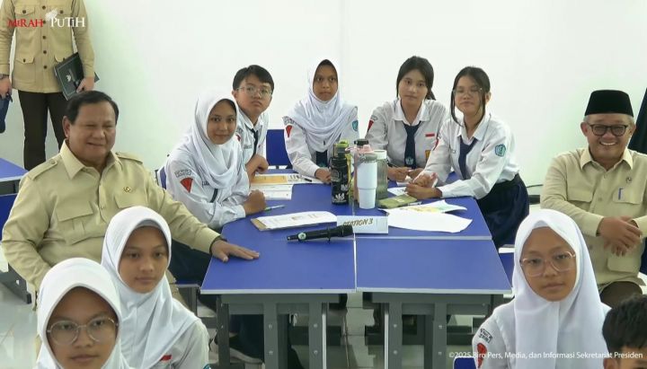 Sekretariat Presiden, melaporkan Prabowo yang didampingi Menteri Pendidikan Dasar dan Menengah (Mendikdasmen) Abdul Mu’ti mengunjungi salah satu ruang kelas VIX yang sedang melakukan pembelajaran tentang zat asam.
