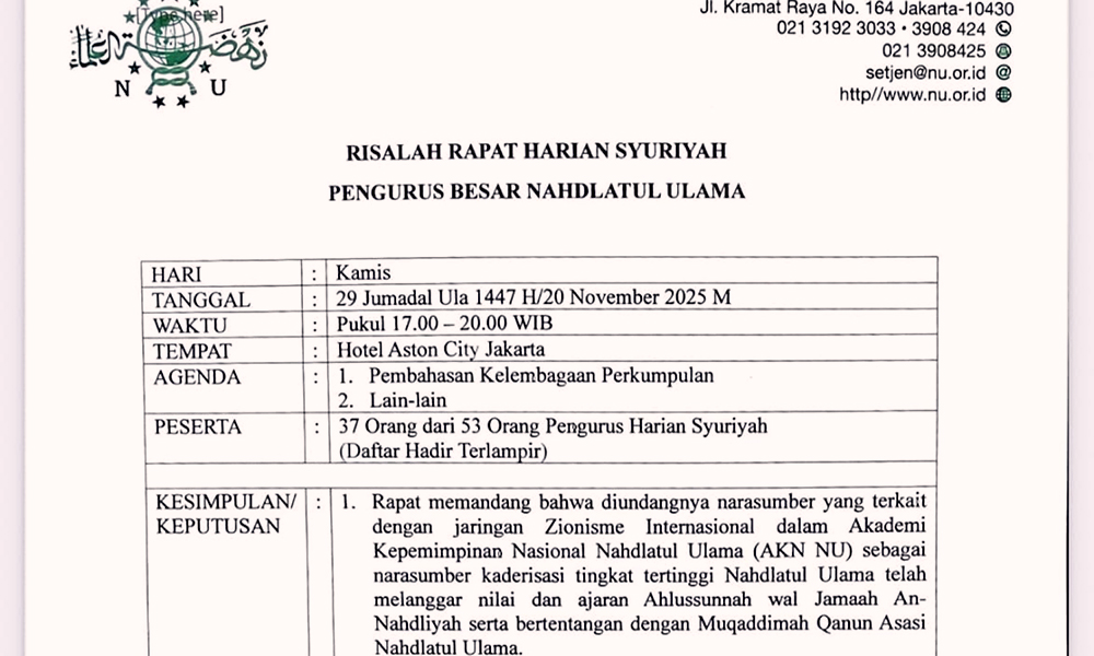 1 – Pengundangan narasumber yang diduga terkait jaringan Zionisme Internasional, yang dianggap bertentangan dengan nilai Ahlussunnah wal Jamaah An-Nahdliyah serta Qanun Asasi NU.