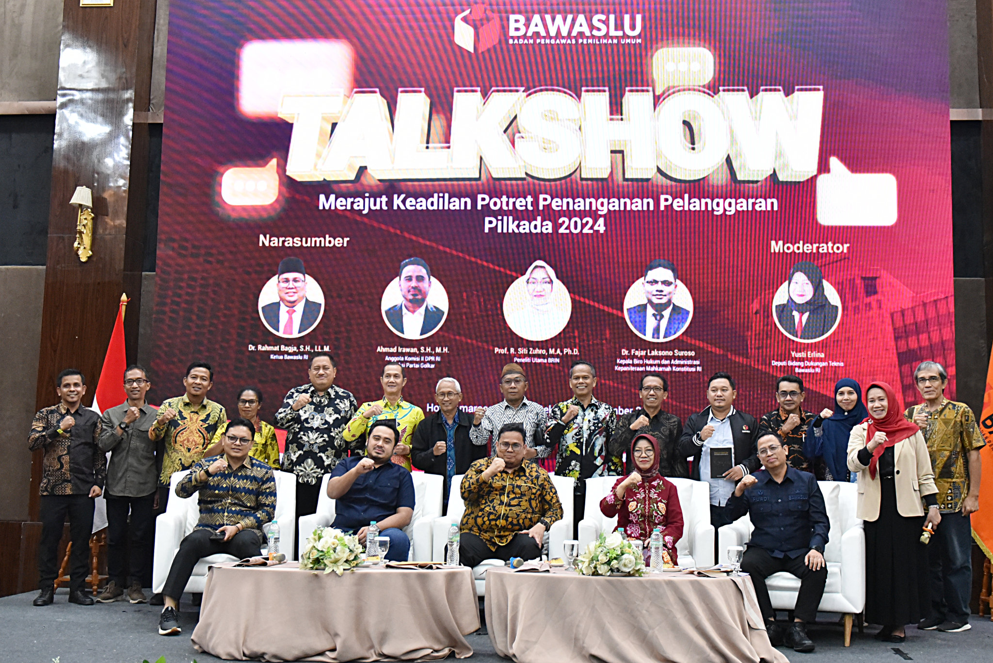 Dalam kegiatan bedah buku dan talk show tersebut, Bawaslu menghadirkan sejumlah narasumber dari Mahkamah Konstitusi (MK), Komisi II DPR RI, pemantau pemilu, hingga kalangan akademisi dan mahasiswa.