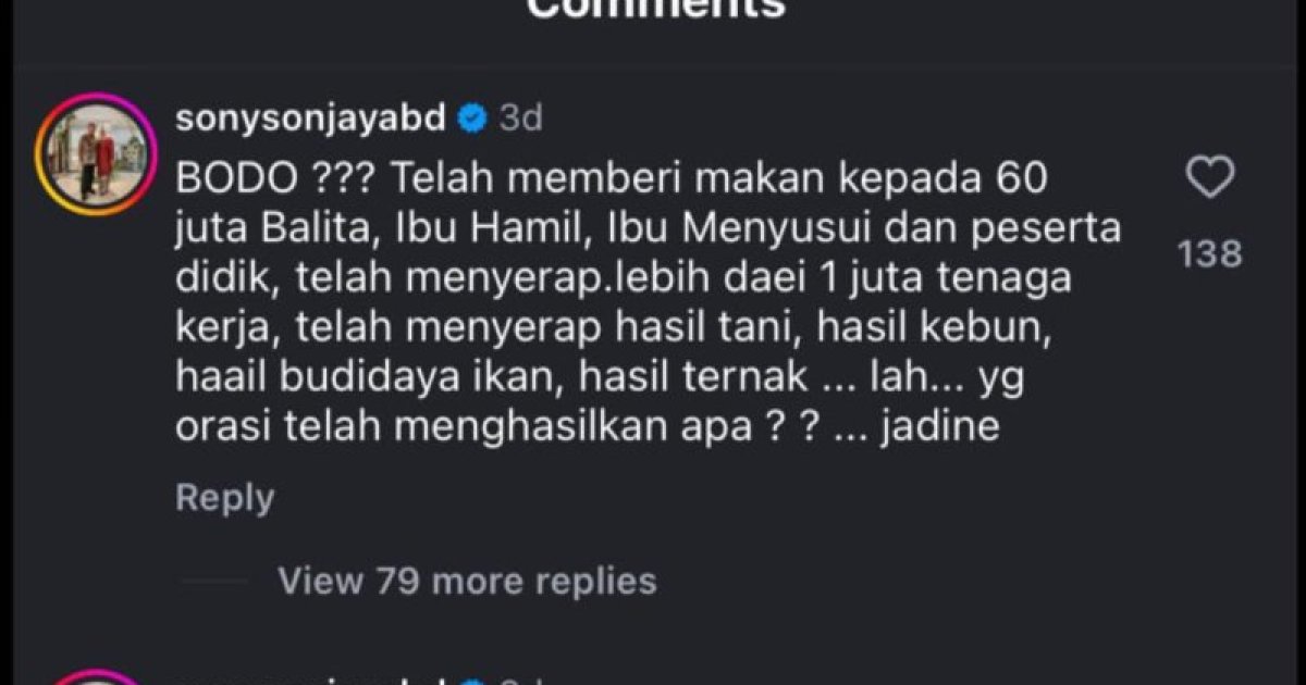 Ketegangan memuncak ketika Wakil Kepala Badan Gizi Nasional (BGN), Irjen Pol (Purn) Sony Sonjaya, merespons kritik tersebut melalui media sosial. Alih-alih memberikan data tandingan, Sony justru mengunggah komentar yang menggunakan emoji monyet—sebuah simbol yang dinilai rasis dan merendahkan martabat.