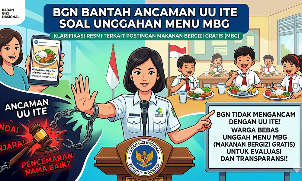 Klarifikasi tersebut disampaikan menyusul beredarnya informasi yang menyebut BGN akan memidanakan masyarakat menggunakan Undang-Undang Informasi dan Transaksi Elektronik (ITE) apabila membagikan menu MBG di media sosial.