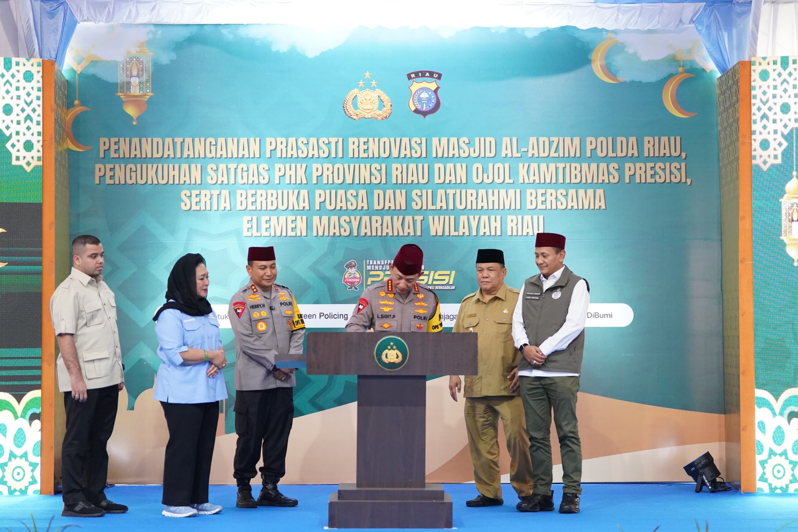 AKTUALITAS.ID -Kapolri Jenderal Polisi Listyo Sigit Prabowo meresmikan renovasi Masjid Al-Adzim Mapolda Riau dalam rangkaian kunjungan kerja dan Safari Ramadan di Pekanbaru, Selasa (17/3/2026) petang.