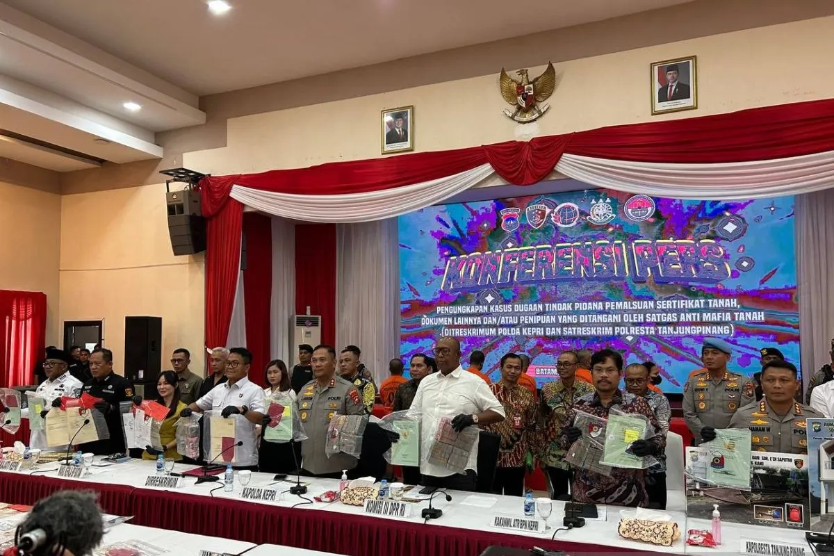 AKTUALITAS.ID – Satgas Antimafia Tanah Kepolisian Daerah Kepulauan Riau (Polda Kepri) menangkap tujuh tersangka pemalsuan sertifikat tanah di wilayah Tanjungpinang, dengan kerugian dialami korban mencapai Rp16,84 miliar.