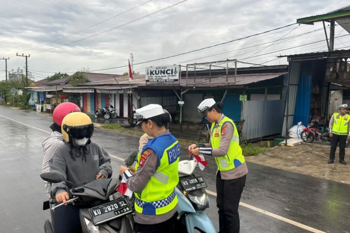 Sambut HUT ke-80 RI, Satlantas Polres Malinau Bagikan Bendera Merah Putih