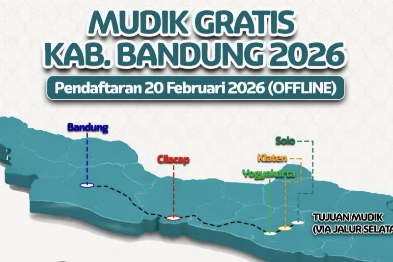 Sementara itu, Kadishub menyampaikan pendaftaran mudik gratis dibuka secara luring pada 20 Februari 2026 pukul 08.00–14.00 WIB dengan lokasi pendaftaran berada di Kantor Dishub Kabupaten Bandung Jalan Gandasari No.15, Terminal Ciparay dan Terminal Cicalengka.