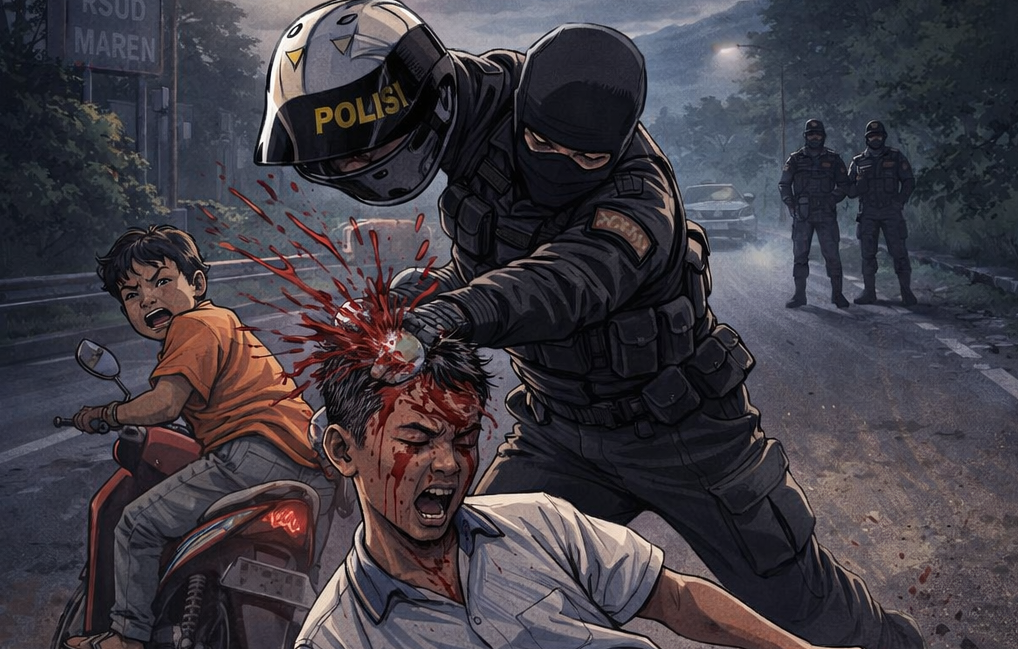 Dalam perjalanan di jalan menurun, mereka tiba-tiba dicegat oleh seorang personel Brimob berinisial Bripda MS. Tanpa dialog panjang, pelaku diduga langsung melompat dan menghantamkan helm ke arah kepala korban. Benturan keras membuat Arianto terhempas dari sepeda motor dan terseret beberapa meter di atas aspal.