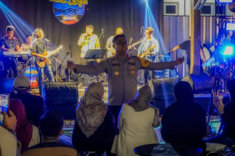 Kapolres Ciamis turun langsung menemui masyarakat dengan cara unik untuk bisa menghibur pemudik melalui pertunjukan musik di tempat istirahat di jalur arteri.