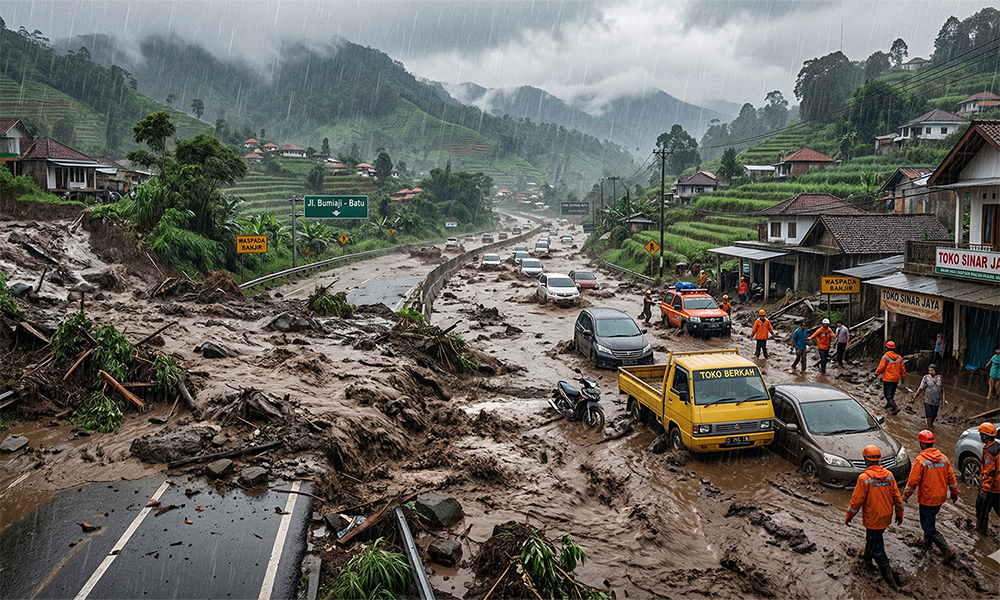 Banjir Lumpur Lumpuhkan Jalan di Kota Batu