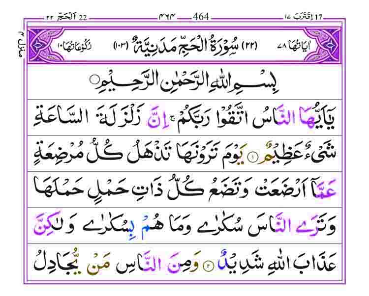 Surah Al-Hajj (الحج) berarti “Ibadah Haji”, yang merujuk pada salah satu pilar utama dalam Islam. Di dalamnya, Allah SWT menyingkapkan keagungan hari kiamat, kisah penciptaan manusia, perintah melaksanakan haji, hingga izin pertama bagi umat Islam untuk berjihad membela diri dari penindasan.