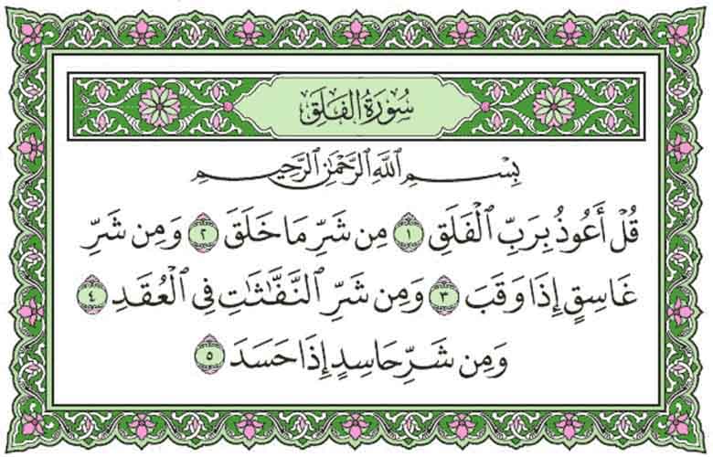 - Katakanlah, “Aku berlindung kepada Tuhan yang menguasai subuh (fajar),