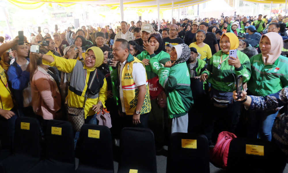 AKTUALITAS.ID – Ketua Umum Partai Golkar Bahlil Lahadalia menyapa pengemudi ojek online dan warga disela acara pembagian sembako sabagai rangkaian HUT ke-61 Partai Golkar di Kantor...