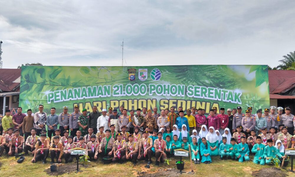 Hari Pohon Sedunia Kapolres Bersama Wabup dan Pelajar Hijaukan Pelalawan