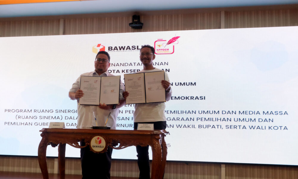 AKTUALITAS.ID – Ketua Badan Pengawas Pemilihan Umum (Bawaslu) Republik Indonesia Rahmat Bagja (kiri) bersama Ketua Koalisi Pewarta Pemilu dan Demokrasi (KPPDem) Achmad Satryo (kanan) setelah menandatangani...