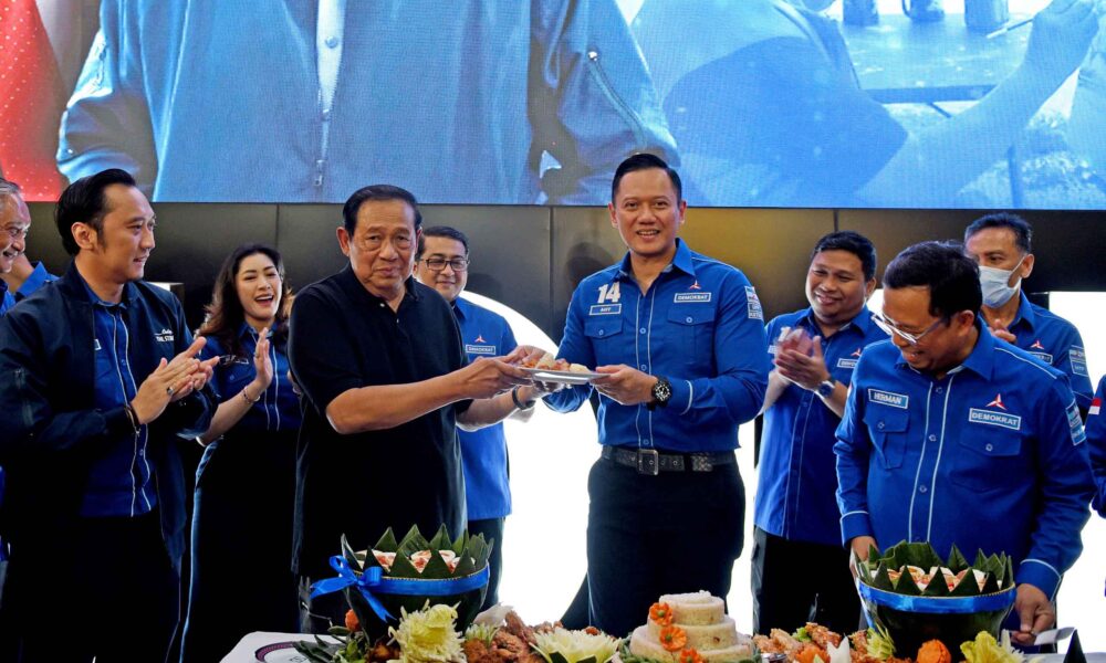 AKTUALITAS.ID – Ketua Majelis Tinggi Partai Demokrat Susilo Bambang Yudhoyono (SBY) memberikan lukisan kepada Ketua Umum Partai Demokrat Agus Harimurti Yudhoyono (AHY) yang disaksikan Sekjen Demokrat...