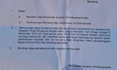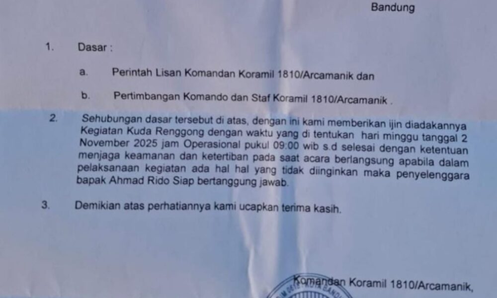AKTUALITAS.ID – Sebuah surat izin keramaian pertunjukan Kuda Ronggeng yang dikeluarkan oleh Koramil 1810/Arcamanik mendadak viral di media sosial. Pasalnya, kewenangan pemberian izin keramaian seharusnya berada...