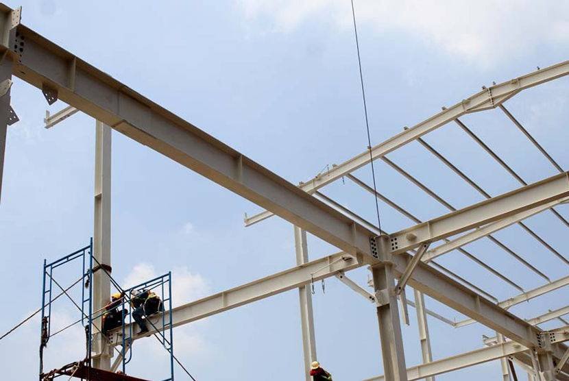 AKTUALITAS.ID – Pekerja menyelesaikan proyek pembangunan Jembatan Penyeberangan Multiguna (JPM) atau Skybridge Tanah Abang di Jakarta, Sabtu (8/9/2018). Skybridge tersebut dibangun di atas ruas Jalan Jatibaru Raya, dan akan menghubungkan antara Stasiun Tanah Abang dengan Blok G. Skybridge dibangun sepanjang 386,4 meter dengan lebar 12,6 meter.
