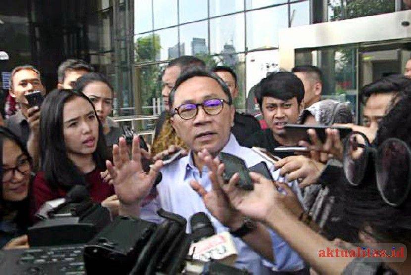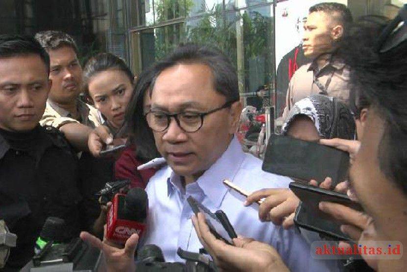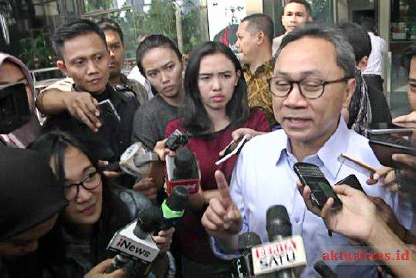 - Ketua MPR Zulkifli Hasan (tengah) menjawab pertanyaan wartawan seusai diperiksa di gedung KPK, Jakarta, Selasa (18/9/2018). Wakil Ketua Majelis Pembina Persatuan Tarbiyah Islamiyah (PERTI) itu diperiksa KPK sebagai saksi dalam penyidikan kasus suap pengadaan barang dan jasa di lingkungan Pemkab Lampung Selatan Tahun Anggaran 2018 dengan tersangka Gilang Ramadhan.
