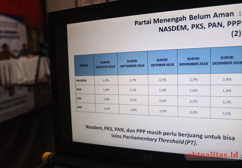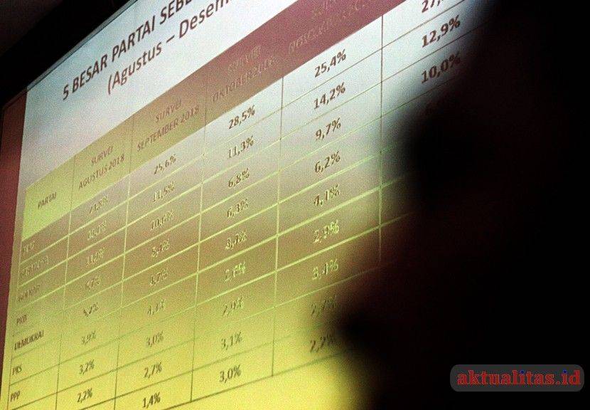 AKTUALITAS.ID – Peneliti LSI Denny JA, Ardian Sopa didampingi Rully Akbar saat memaparkan kembali rilis survei terbaru bertajuk ‘Yang Juara dan Yang Terhempas: Pertarungan Partai Politik 2019’ di kabtit LSI Rawamangun, Jakarta Timur, Selasa (8/1/2019). Salah satu hasil survei menempatkan PDIP sebagai parpol pemenang Pilpres 2019 dengan raihan 27,7 persen suara, disusul Gerindra, 12,9 persen, dan Golkar 10, 6 persen.