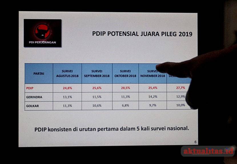 LSI memprediksi PDIP sebagai parpol pemenang Pilpres 2019 dengan raihan 27,7 persen suara, disusul Gerindra, 12,9 persen, dan Golkar 10, 6 persen.