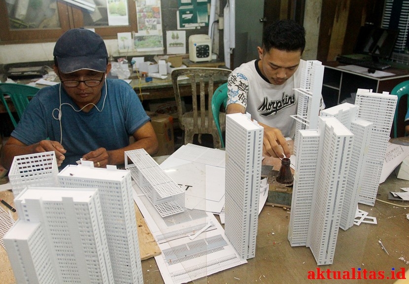 AKTUALITAS.ID – Suasana pembuatan maketproperti di Architeka Raya Studio, Bintaro, Tangerang Selatan, Minggu (13/1/2019). Maket arsitektural bangunan tersebut dibuat dari bahan PVC Ackrilic dan dijual mulai dari harga Rp 8 juta hingga puluhan juta rupiah. [Kiki Budi Hartawan]