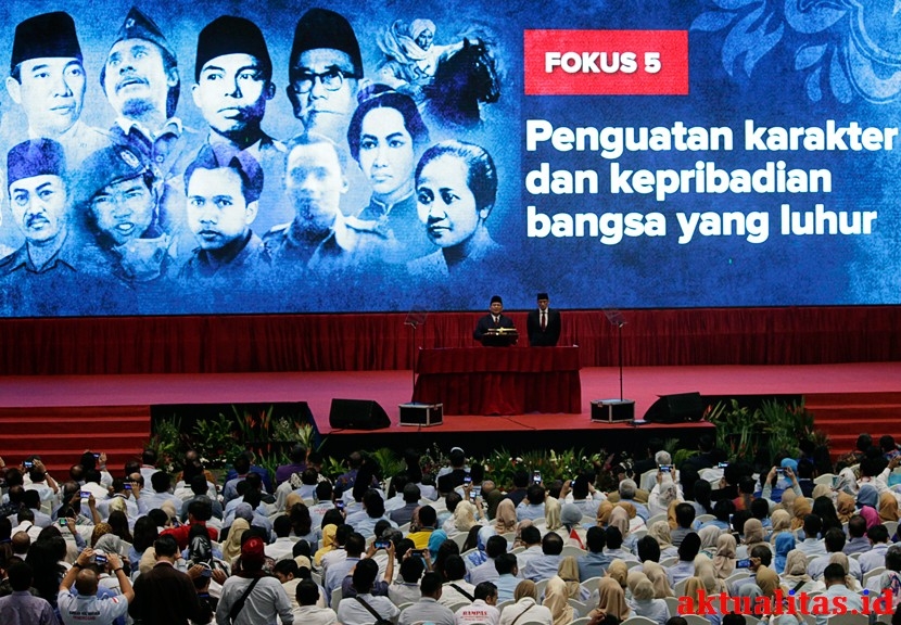 AKTUALITAS.ID – Calon Presiden nomor urut 02 Prabowo Subianto (kiri) didampingi calon Wakil Presiden Sandiaga Uno (kanan) menyampaikan pidato kebangsaan di Jakarta Convention Center, Jakarta, Senin (14/1/2019). Prabowo-Sandiaga menyampaikan pidato kebangsaan dengan tema “Indonesia Menang” yang merupakan tagline visi dan misinya [KBH]