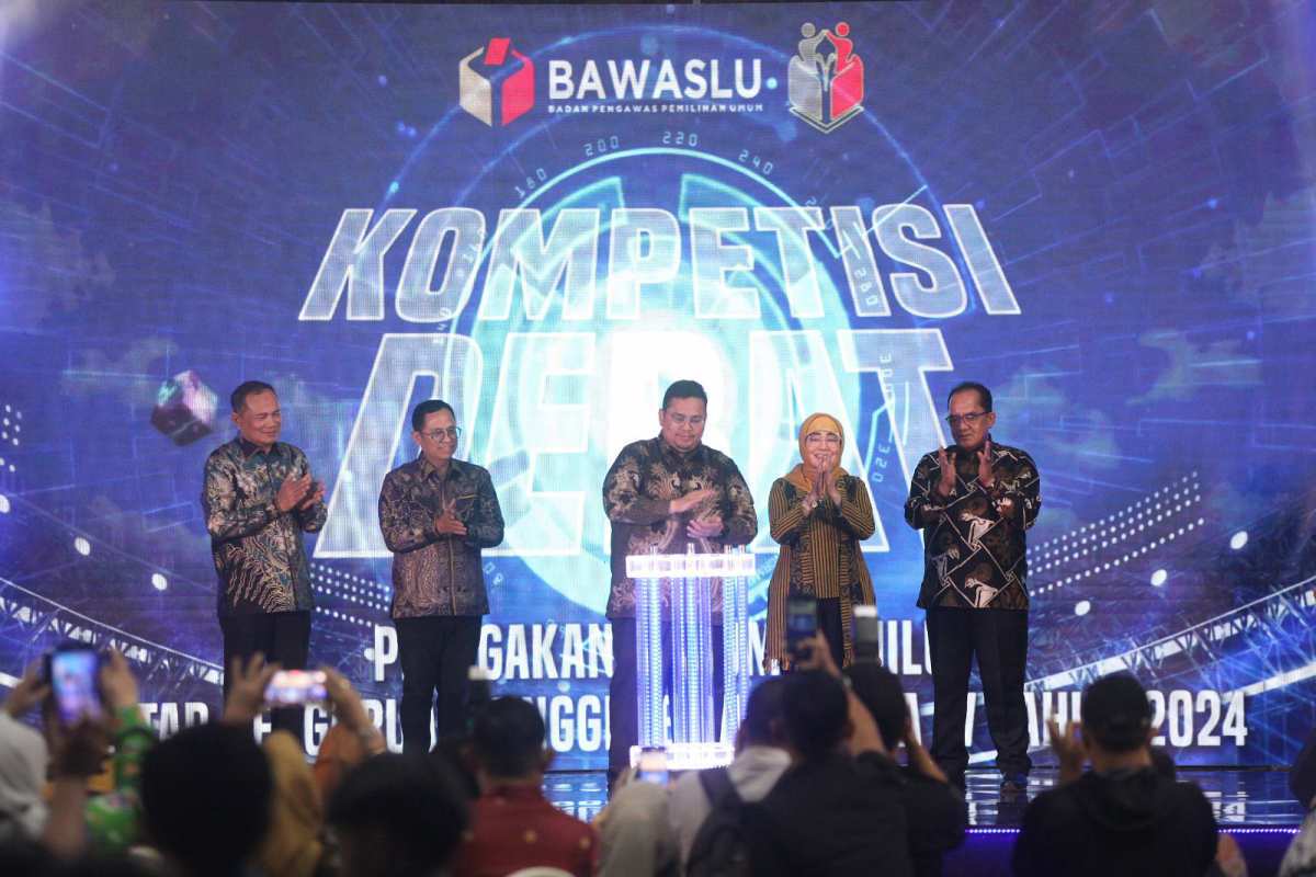 Kompetisi Debat Penegakan Hukum Pemilu Antar Perguruan Tinggi Se-Indonesia Ke-IV Tahun 2024 yang diikuti oleh 24 (Dua Puluh Empat) Perguruan Tinggi yang telah lolos di Tahap Eliminasi dengan Tema Pemilihan Serentak Tahun 2024. (Agus Priatna)