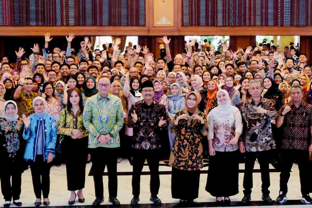 Dalam acara tersebut Gus Ipul dan Agus Jabo melakukan perkenalan dan berfoto bersama pegawai dan langsung memaparkan sejumlah program kerja Kementerian Sosial periode 2024-2029. (Dede Kurniawan)