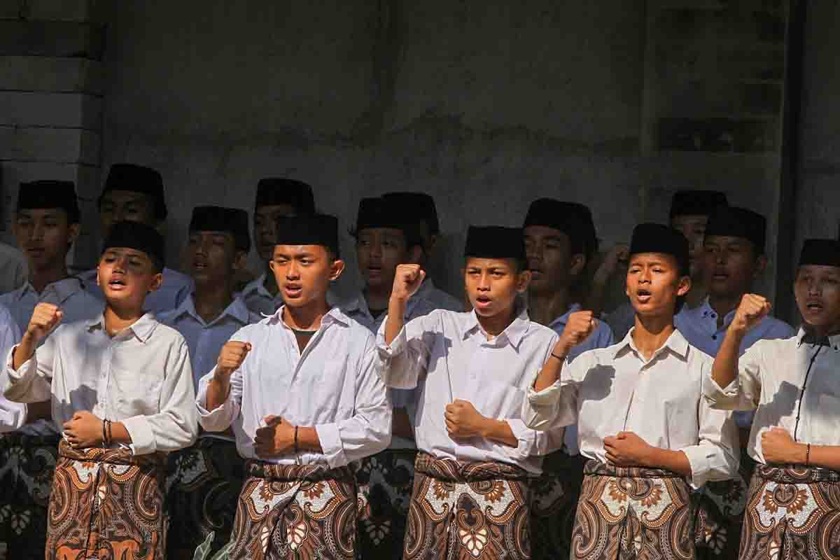 Santri mengikuti peringatan Hari Santri Nasional 2024 di Pondok Pesantren Mahasina Darul Qur'an Wal Hadits, Jatiwaringin, Bekasi, Jawa Barat, Selasa (22/10/2024). AKTUALITAS.ID/Agus Priatna